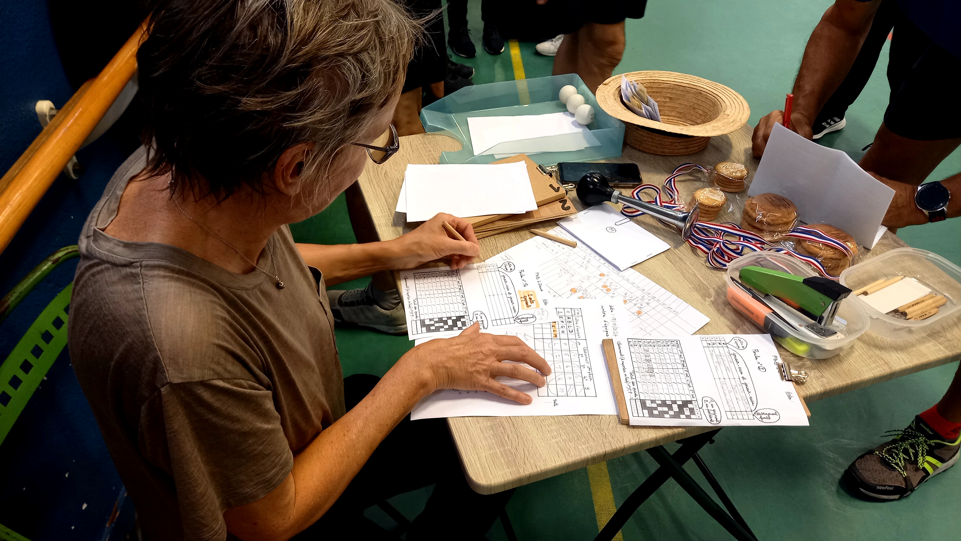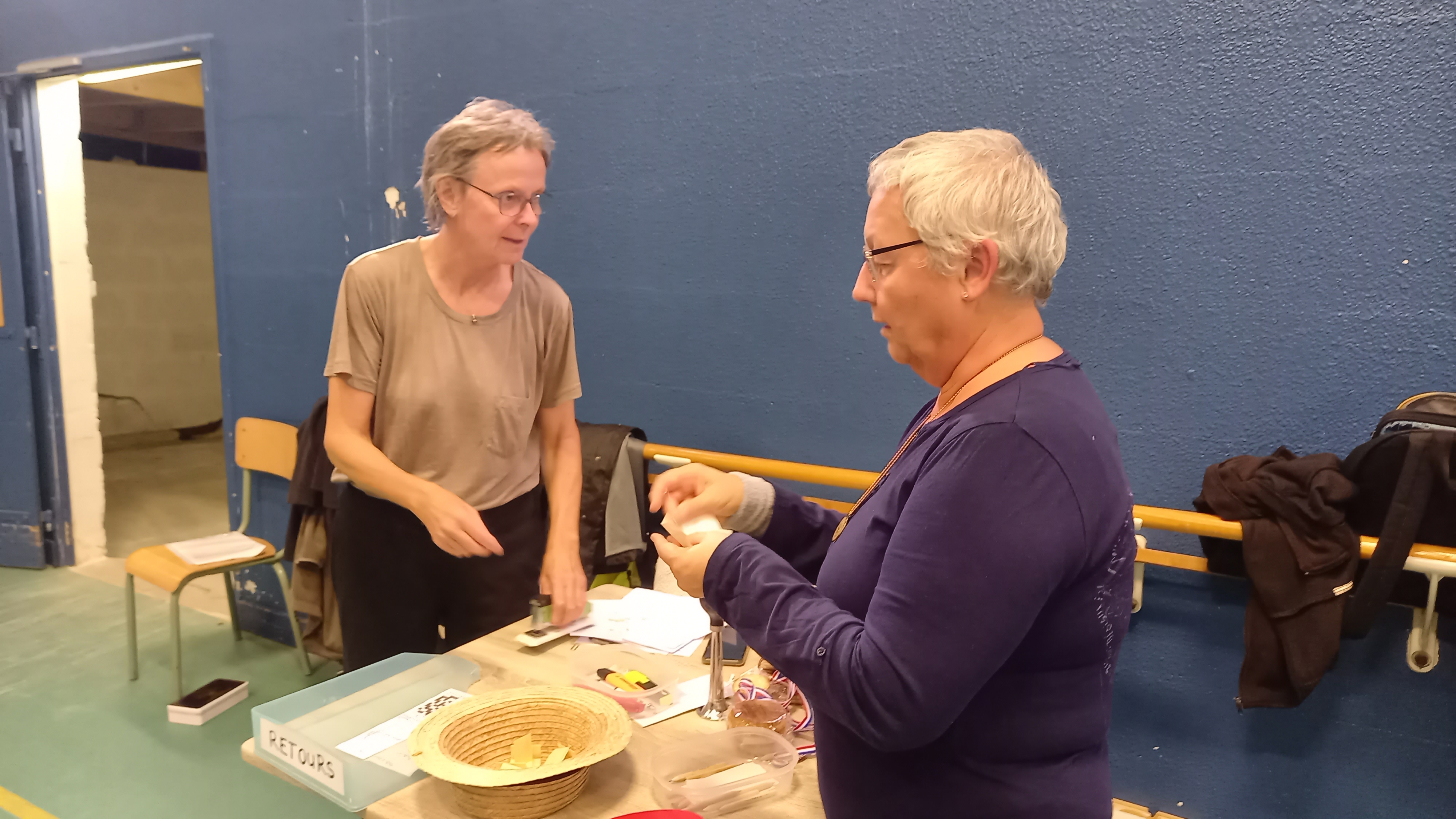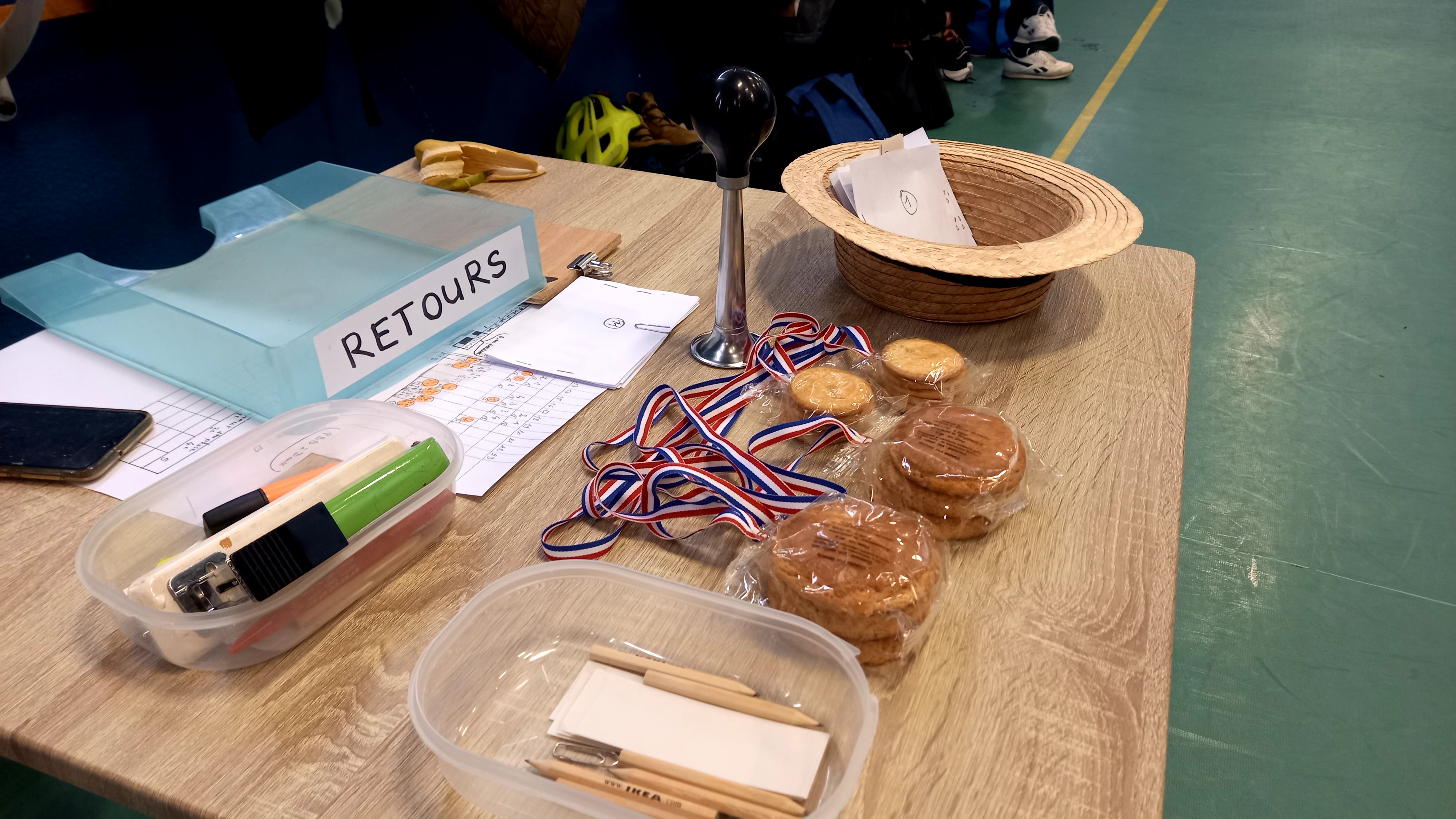 26 participants, 13 équipes donc pour cette 1ère édition, avec une 1ère série de poules, puis une seconde série de poules qui a fait se confronter les équipes de niveaux similaires, au vu des résultats de la 1ère série. Une organisation très bien travaillée et menée par Joëlle Vauth, qui a exposé cela aux participants, et a présenté les originales et appétissantes récompenses :