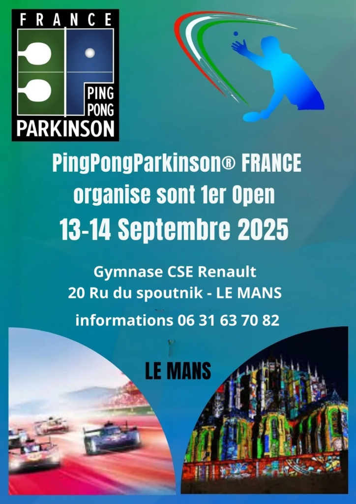 « PingPongParkinson » France a organisé son 1er tournoi Open les 13 et 14 septembre 2025 au Mans (72). Geneviève Dalle, adhérente ATT17, a participé à ce tournoi, qui a réuni environ 70 participant(e)s ( français, allemands, suédois… ), répartis en trois catégories. Geneviève a apprécié l’ambiance très conviviale et beaucoup d’échanges (et pas que de balles !), avec à la clé des podiums :