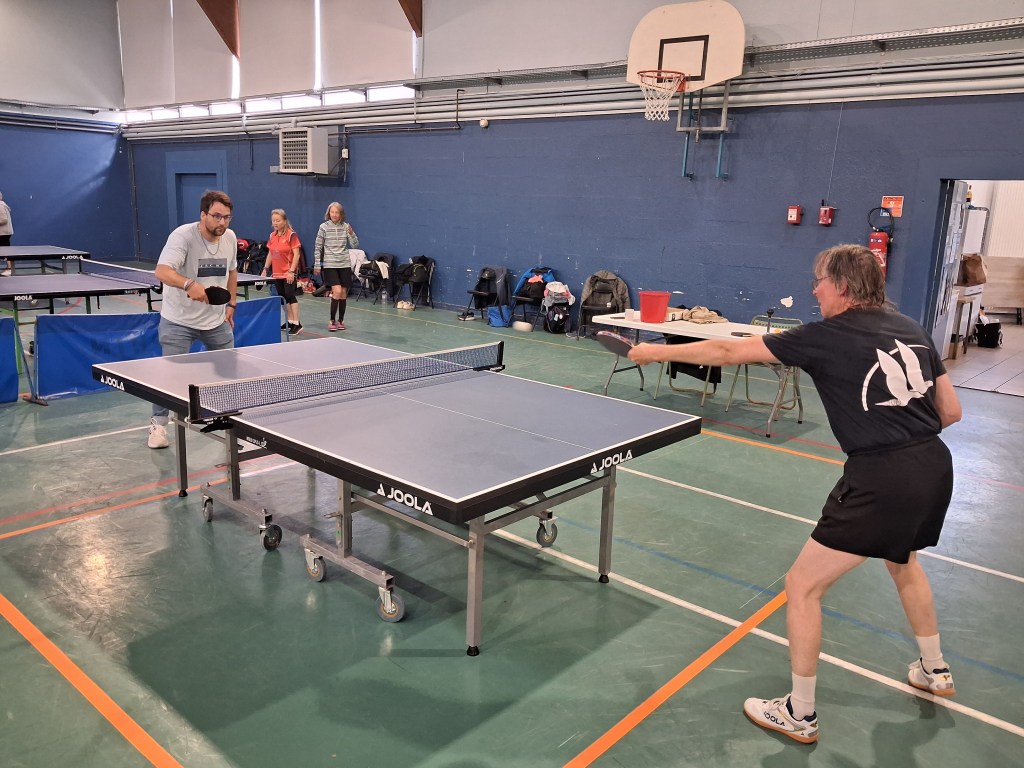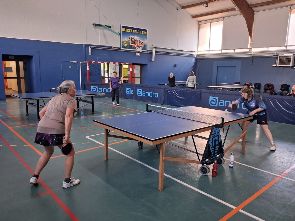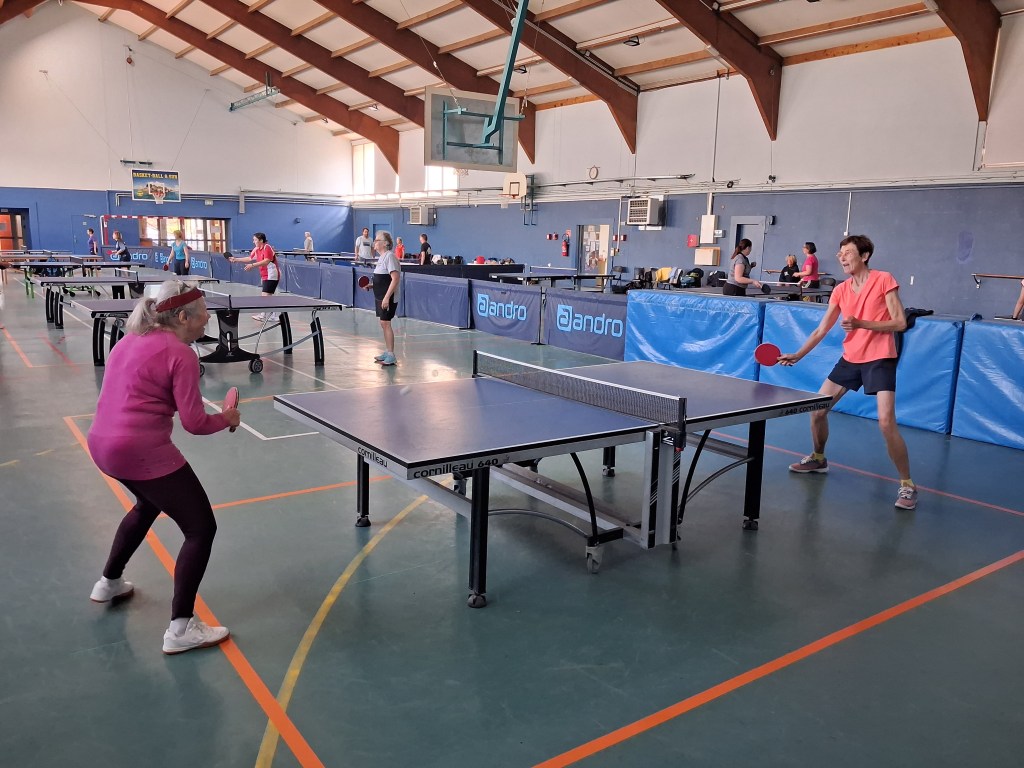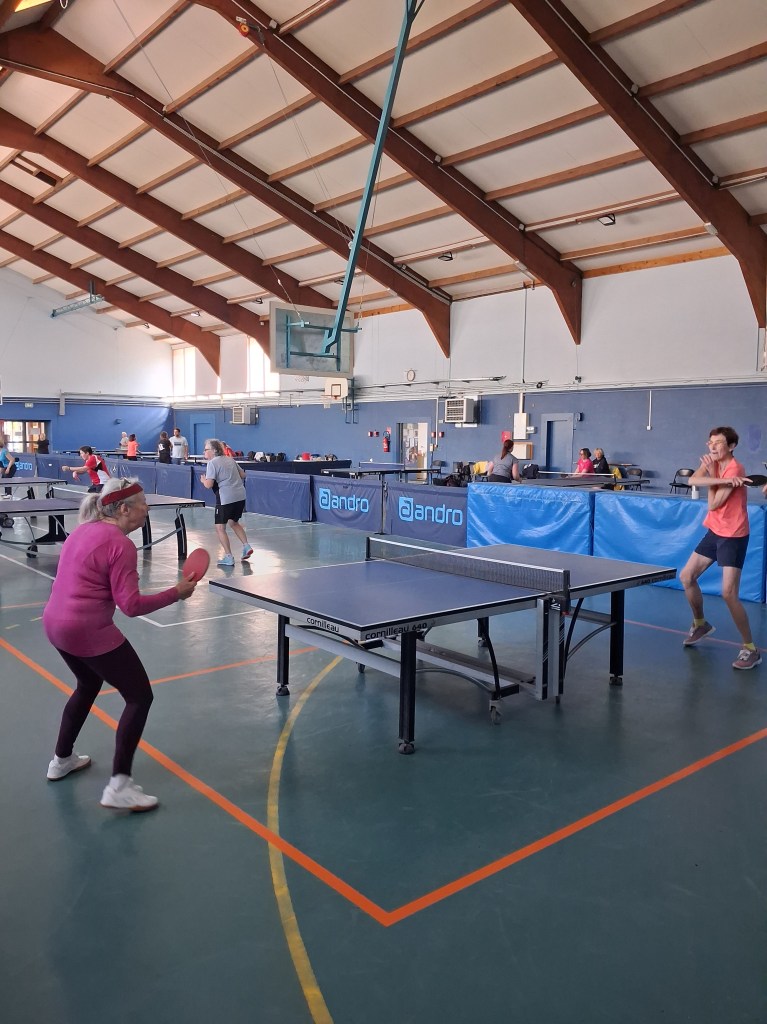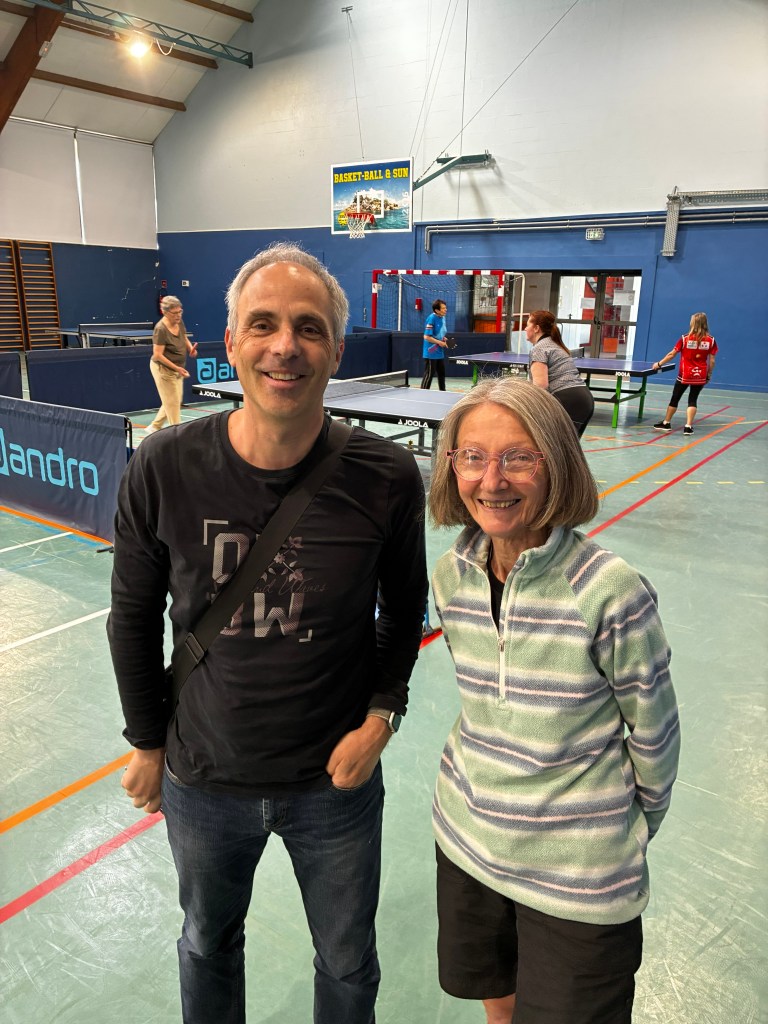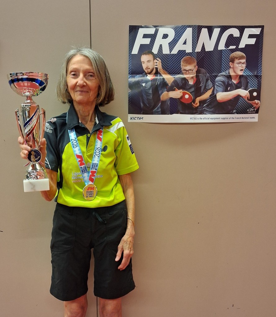 « Félicitations à Danielle, son titre est largement mérité. Danielle a fêté ses 80 ans juste après l’épreuve, elle changera de catégorie en 2027, un nouveau challenge avec grandes ambitions. Francine a très bien joué, quoi qu’elle en dise – c’est une éternelle insatisfaite d’elle-même – son niveau a progressé depuis l’année dernière. Comme quoi, au tennis de table, on peut progresser à tout âge ! De mon côté, je suis tombé en 1/8ème de finale en simple, contre un joueur qui a fait un match exceptionnel, il n’y avait rien à faire … Si les autres participants ne ramènent pas de médaille, ce n’est vraiment pas passé loin pour Jean-Pierre (Béguin) et les autres compétiteurs ont livré du très beau jeu.