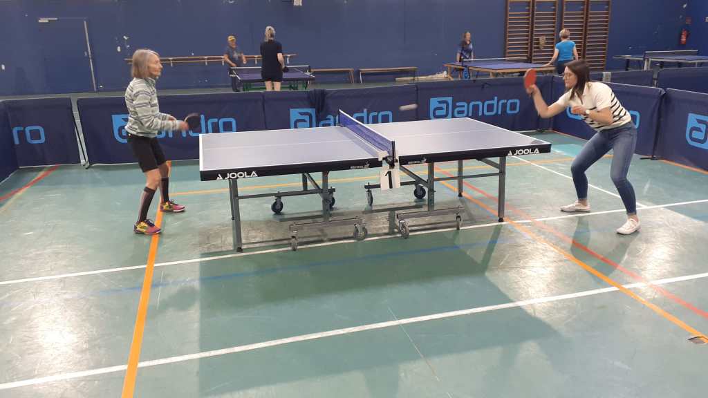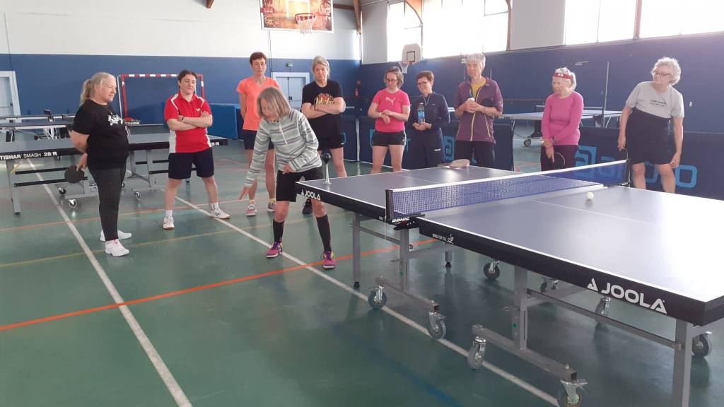 Avec des entraînements spécifiques, des échauffements adaptés, des conseils, et à l’aide de bénévoles du club, Danielle permet à des joueuses et joueurs de trouver ou retrouver le plaisir du sport, avec le tennis de table.