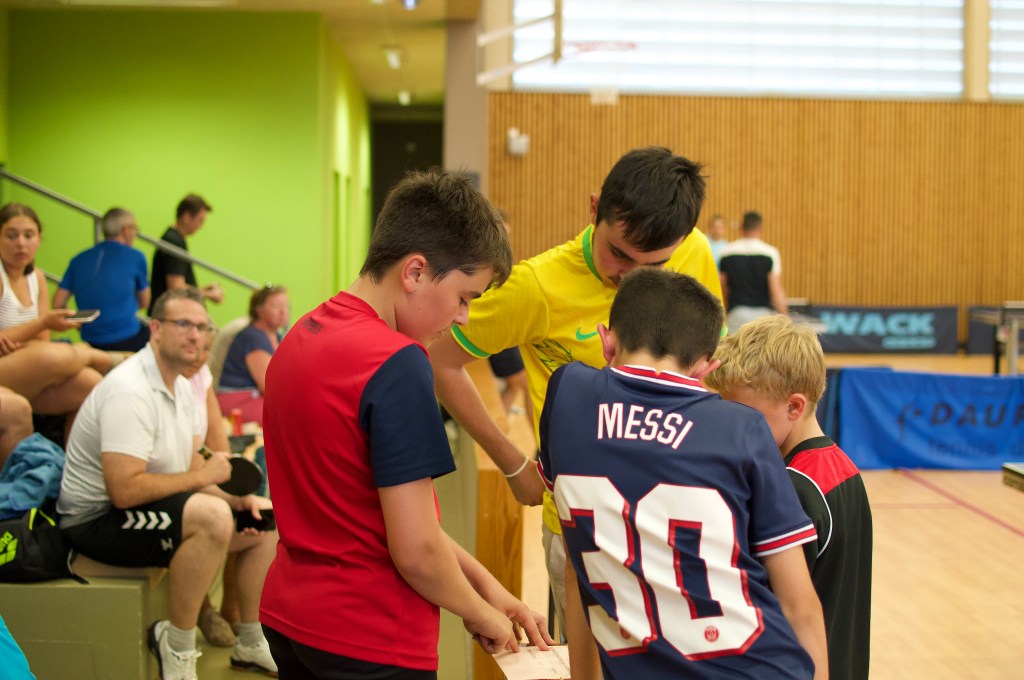Puis une série d’exercices : maintien de balle, initiation aux effets, coordination, etc … et enfin, du jeu !