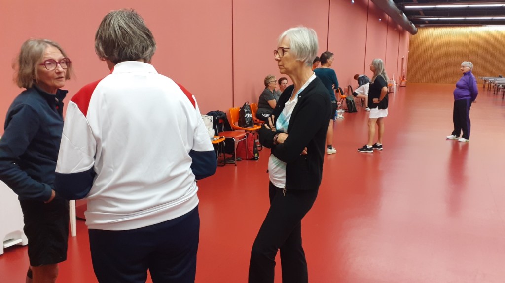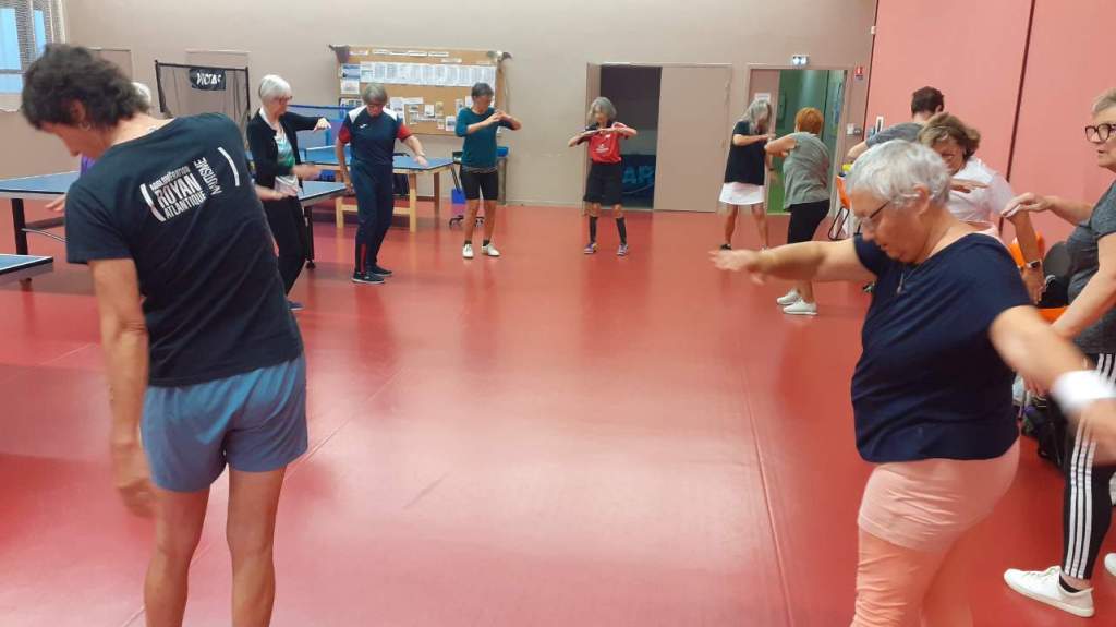 La séance dure 3 heures avec pour commencer un échauffement complet. Danielle, qui est aussi référente à ATT17 pour le « Ping santé« , adapte cet échauffement aux capacités physiques des participantes. « J’avais orienté l’échauffement sur l’équilibre, cela a été utile à tout le monde ! » nous rapporte Danielle.